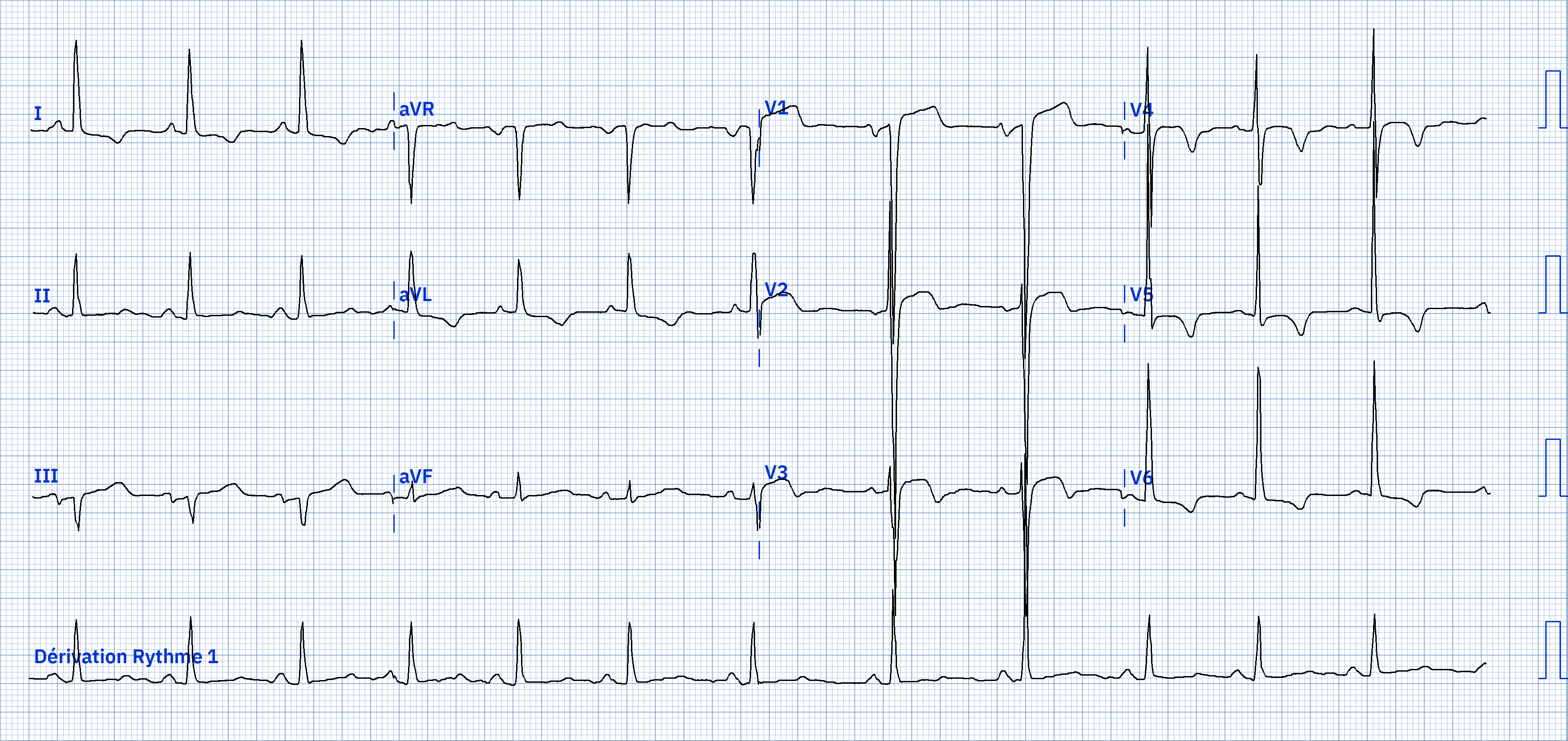 • Onde T inversée évocatrice d'une cardiopathie, latérale (V5-V6 Di aVL)
